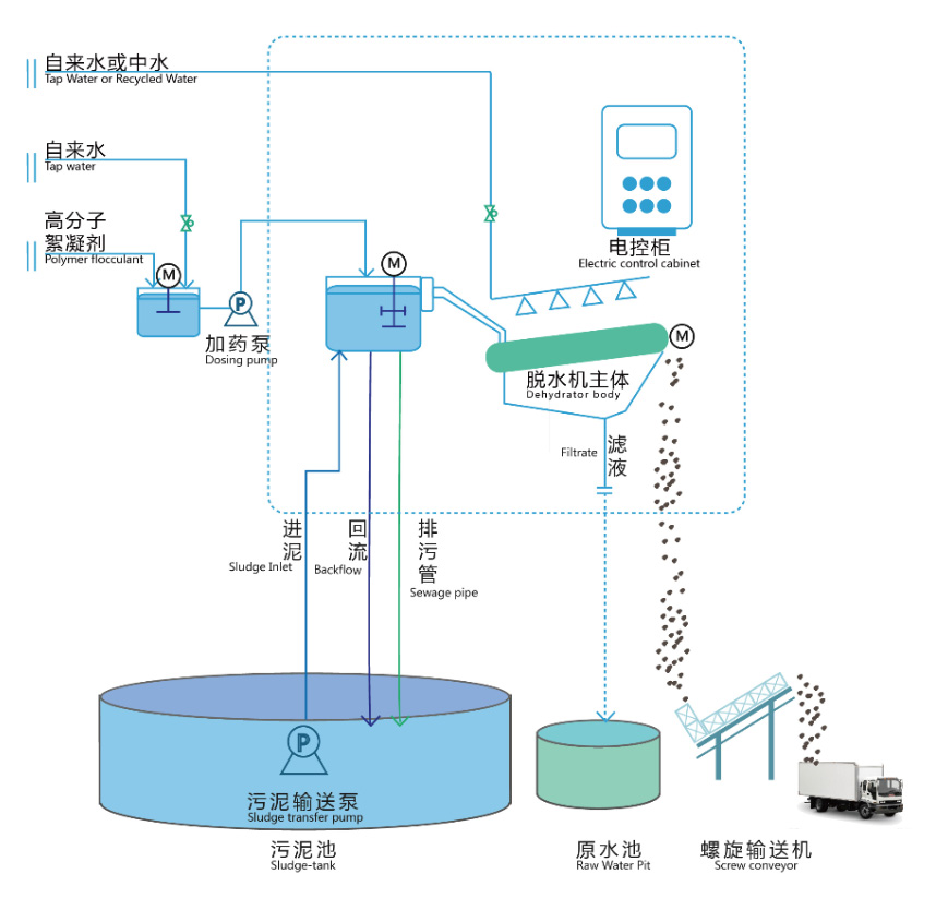 疊螺式污泥脫水機(jī)集全自動(dòng)控制柜、絮凝混合槽、污泥濃縮脫水本體及濾液槽于一體,可在全自動(dòng)運(yùn)行的條件下實(shí)現(xiàn)高效絮凝,并連續(xù)完成污泥濃縮和壓榨脫水工作,將收集的濾液回流或排放。